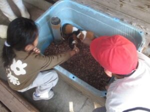 10月16日17日の2日間、「夕やけ小やけふれあいの里 おおるりの家」の宿泊学習に行ってきました。1日目は、高尾山ではなく、雨のため、京王遊びの森HUGHUG、京王レールランドに行き、たてわり班ごとの活動をしました。2日目は、ふれあいの里内にある「ふれあい牧場」で、動物へのえさやり体験をしたり、バーベキューサイトで焼きそば作りをしたりしました。自然豊かな場所で過ごす2日間は、貴重な経験となりました。