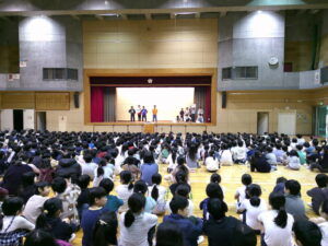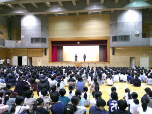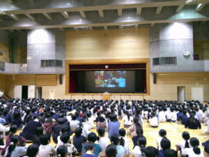 代表委員会が、ユニセフについて動画やクイズなどを通して説明しました。「世界中のすべての子どもたちが、元気に、安心して、自分らしく生きられるようにすること」「世界中の子供たちが笑顔で生活できるように」との思いを込めて全校に話をしていました。