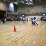 競技は、台風の目。四人一組で、コーンを回ります。どのクラスも勝利を目指し、協力する姿はステキでした。
