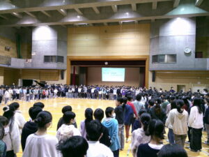 音楽集会で「大切なもの」を全校合唱しました。6年生に感謝の気持ちを込めてやさしく歌い上げていました。